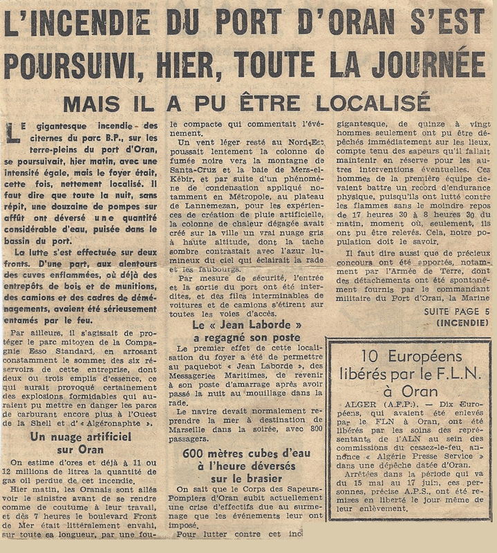 JUIN 1962 LE PORT D'ORAN EN FEU