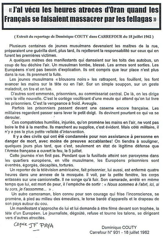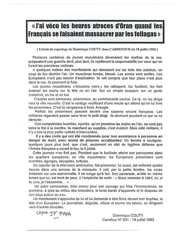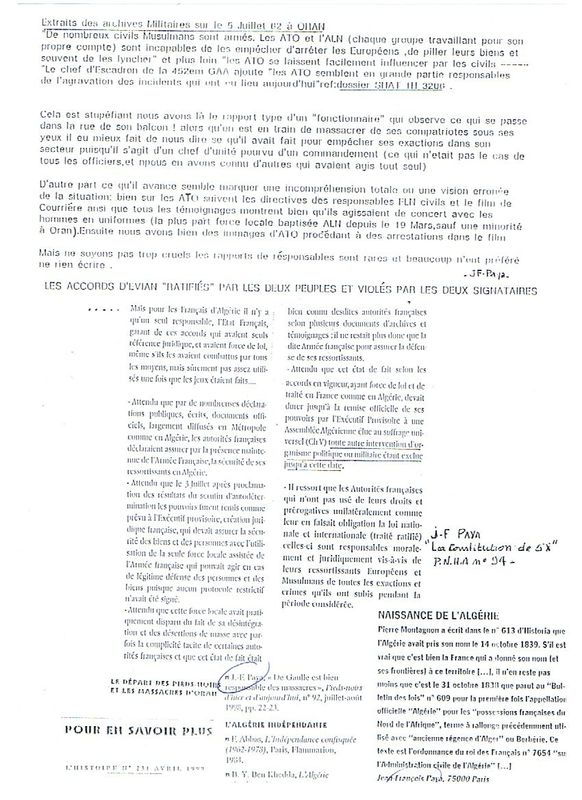 Pièces jointes dont massacre d’Oran occulté et hors dates d’amnisties :