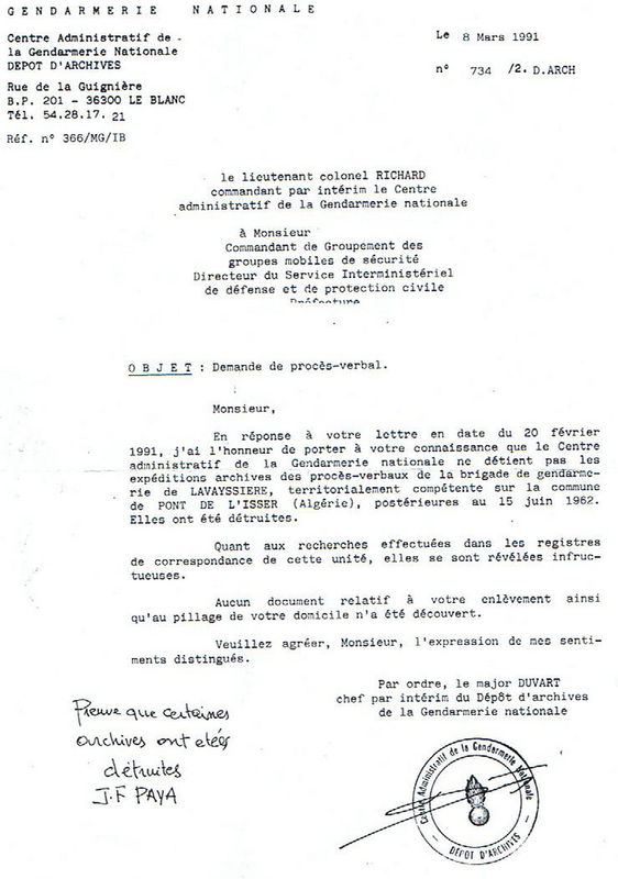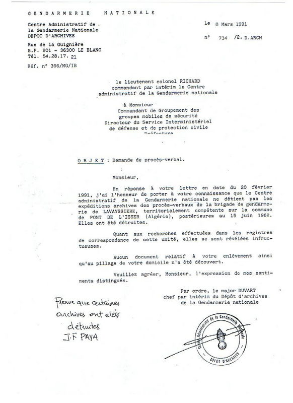 Document transmis par J. F. Paya