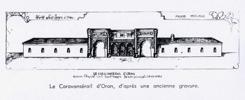 Façade principale du caravansérail d'Oran devenu l'hopital St Lazare (1849-1893)