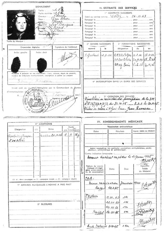 Voici, la vie militaire de l’une d’entre elles, 17ans et demi, la plus jeune engagée de France dans les formations féminines de l’Air (F.F.A) en novembre 1943.