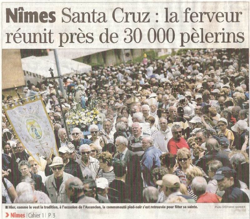 Quand le vent de l’histoire poussa quelque 1 200 rapatriés dont 95 % d’Oranais au Mas de Mingue, ces derniers n’eurent qu’un désir, ramener leur vierge de Santa Cruz qui traversa la Méditerranée en 1965. Son site d’accueil est, depuis, un haut lieu de pèlerinage. Hier, 47 ans plus tard, les fidèles sont revenus s’incliner devant cette pieuse image. Des pieds-noirs pour l’immense majorité, mais aussi diverses communautés religieuses venues assister à l’office, concélébré par Mgr Wattebled, évêque de Nîmes et son excellence M gr Luigi Ventura, nonce apostolique, ambassadeur du Saint-Siège en France, "ému par ces gens, heureux d’être ensemble dans une espérance partagée".