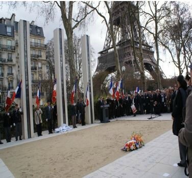Recueillement et dépôt de gerbe devant le Mémorial du Quai Branly dédié aux victimes civiles et militaires de la guerre d’Algérie et des combats du Maroc et de la Tunisie