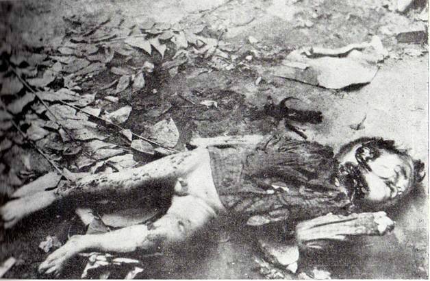Il s’agit du corps d’un petit garçon au prénom resté inconnu, égorgé par les tueurs djihadistes du FLN algérien, le 20 août 1955 à El-Halia (Constantine / Algérie Française).