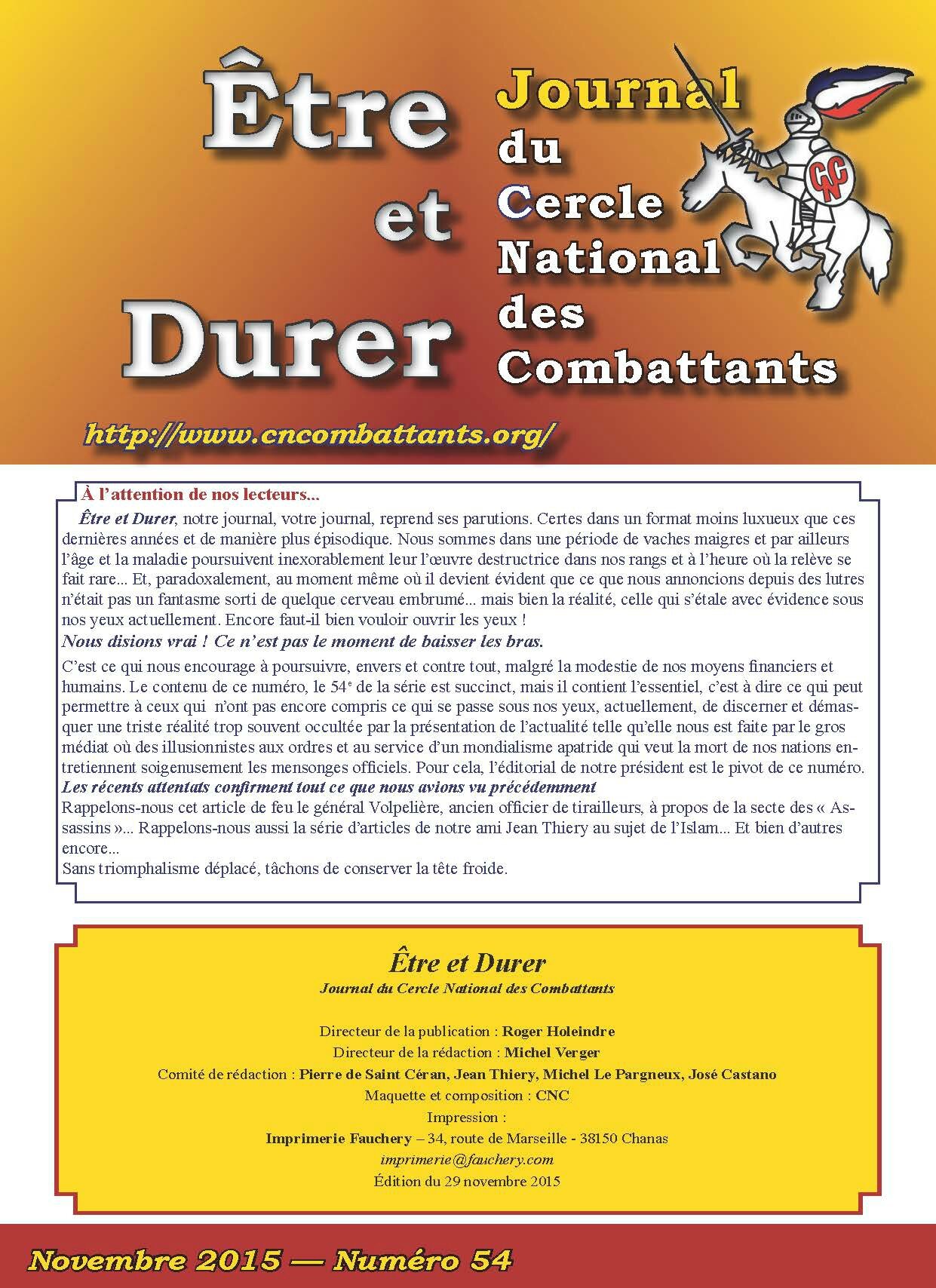 « Etre et Durer », organe du CNC : « Notre patrie est en danger de mort… »