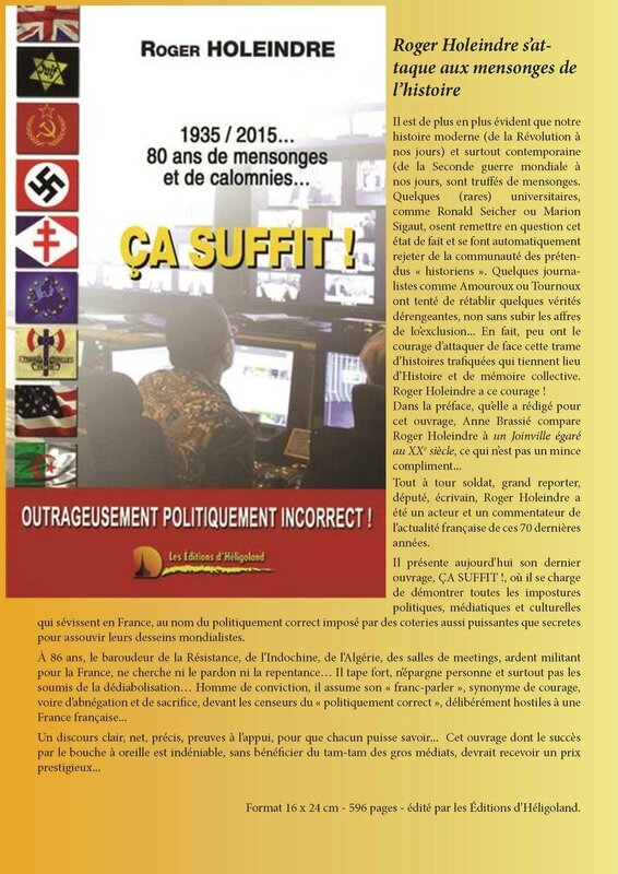 Cette litanie, je le répète… quotidienne… n’est en fait… que l‘abrutissement voulu d’un peuple que l’on veut déposséder… de ses droits… de son sol… de sa culture… de sa religion… de son passé… pour en arriver à la deuxième partie du programme… celle du “grand changement de peuple”…. Dont ces messieurs… qui l’organisent… osent se gausser des patriotes qui, avec juste raison, le dénoncent et appellent à le combattre.