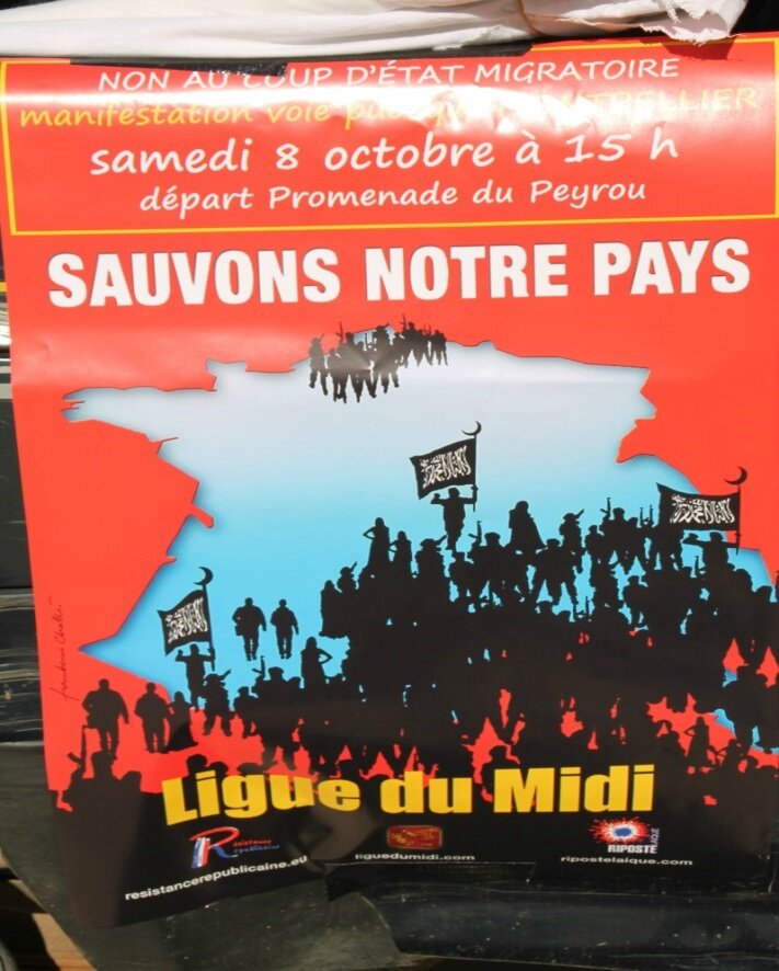 Dernier exemple en date : la manifestation organisée à Montpellier par Richard ROUDIER (Ligue du Midi), en relation étroite avec Pierre CASSEN (Riposte Laïque) et Christine TASIN (Riposte Républicaine), dans le contexte de la quinzaine « Sauvons notre pays » conçu par eux et d’autres.