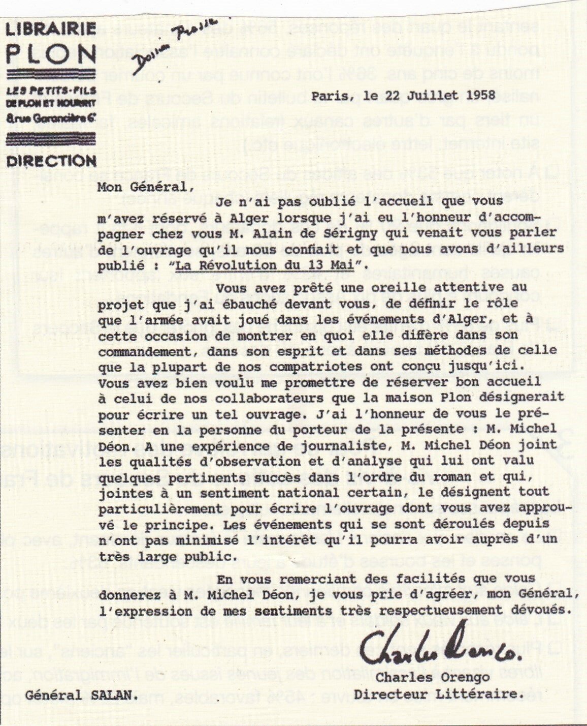 En rajoutant à Toulon « je vous ai compris » vous avez été loin, beaucoup trop loin...en réveillant la traîtrise du chef de l'état d'alors, Charles De Gaulle.