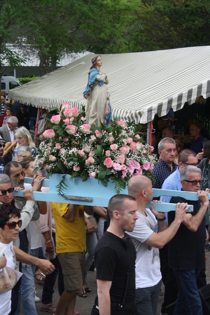 La Procession de l'après midi en fera le tour en remontant par la route pentue de Mgr Lacaste. Aviez vous remarqué que lors de cette procession, arrivée en haut de ce chemin, avant de pénétrer dans l'esplanade.....la Vierge fait un demi tour , tournée vers tous les pèlerins qui suivent cette longue procession....avec une bénédiction des prêtres...