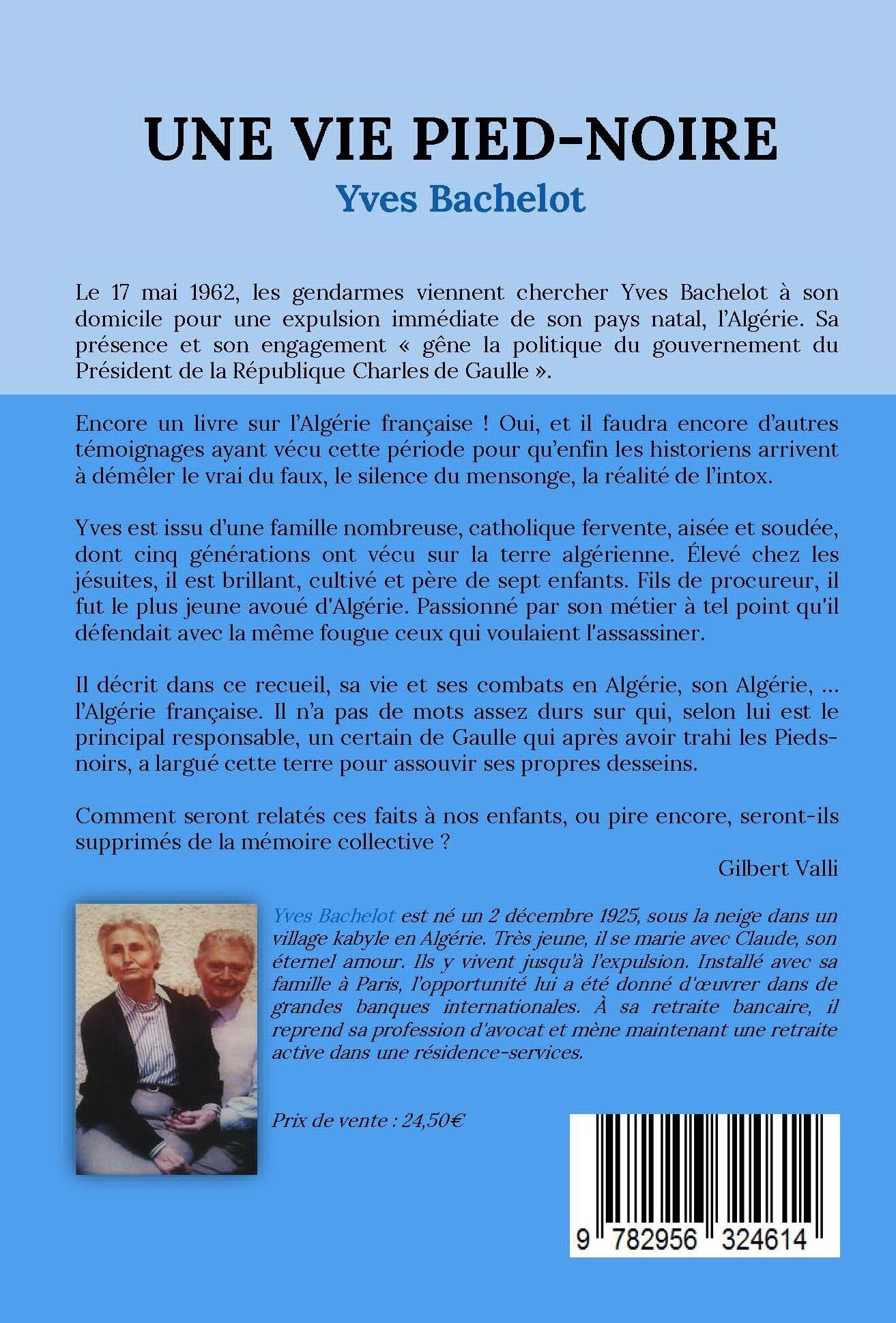 Encore un livre sur l’Algérie française ! Oui, et il faudra encore d’autres témoignages ayant vécu cette période pour qu’enfin les historiens arrivent à démêler le vrai du faux, le silence du mensonge, la réalité de l’intox. Yves est issu d’une famille nombreuse, catholique fervente, aisée et soudée, dont cinq générations ont vécu sur la terre algérienne. Lui-même élevé chez les jésuites est brillant, cultivé et père de sept enfants. Fils de procureur, il fut le plus jeune avoué d'Algérie. Passionné par son métier à tel point qu'il défendait avec la même fougue ceux qui voulaient l'assassiner. L’expulsion de son pays natal l’a fortement marqué, mais ses convictions sont restées intactes. Dans un précédent ouvrage (Souvenirs de Bon Papa), il relatait l’implantation de ce clan de Pieds-noirs en Algérie Il décrit, dans ce recueil, sa vie et ses combats en Algérie, son Algérie, … l’Algérie française. Qu’on adhère ou pas, il argumente ses certitudes avec moult exemples. Il n’a pas de mots assez durs sur le principal responsable qui selon lui, est un certain de Gaulle, qui après avoir trahi les Pieds-noirs, a largué cette terre uniquement pour assouvir ses propres desseins. Comment seront relatés ces faits à nos enfants, ou pire encore, seront-ils supprimés de la mémoire ?Gilbert Valli