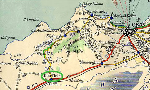 Autour du marabout de Bou-Tlélis, le sol était couvert de palmiers nains, une nappe d'eau entretenait le sous-sol en état permanent de fraîcheur offrait la possibilité d'installation d'un village. L'autorité militaire hésita sur le choix de son emplacement. La salubrité était compromise par les fièvres paludéennes et la dysenterie à cause du voisinage du lac salé de la Grande Sekba d'Oran et des marais entourant les sources de Brédéa.
