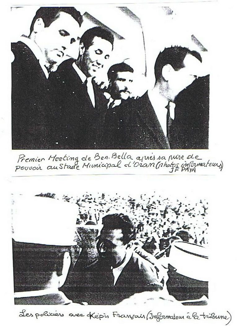 NB : Remarquer qu’après la tragédie du 5 Juillet d'Oran Le consul de France à Oran va avec son attaché militaire JP Chevènement en hélicoptère voir Ben Bella (qui n'a encore aucun rôle officiel !) à Tlemcen pour poser le problème des disparus du 5 Juillet donc on a bien la preuve d'un contact diplomatique alors que le pouvoir officiel est toujours à Alger (pour les contacts secrets pas de preuves archivées bien sur).