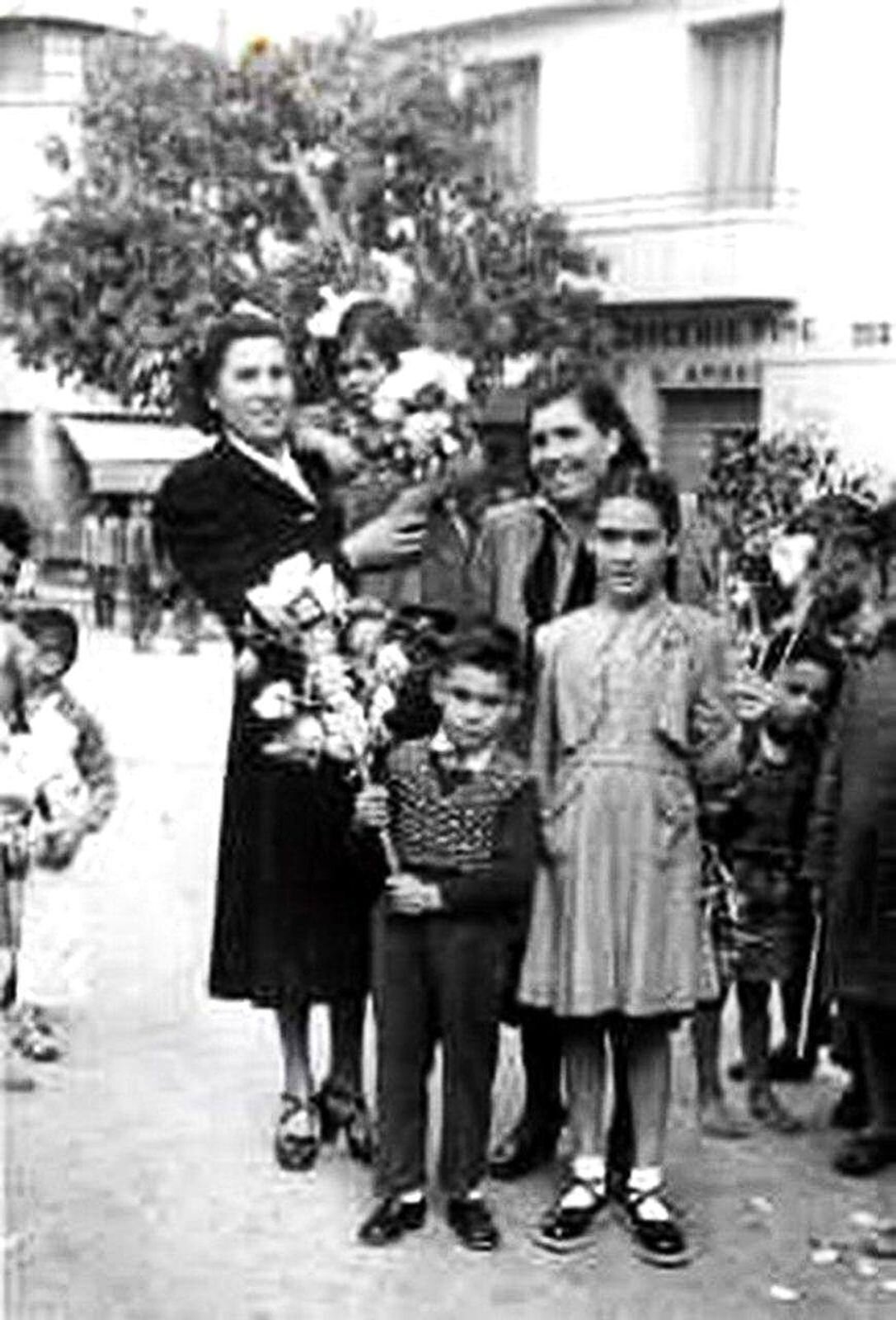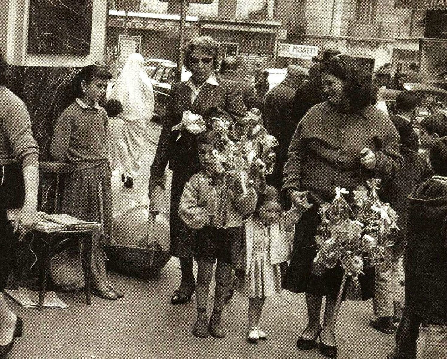 Devant l'église se vendaient ces petits arbres avec une composition en forme d'arbre avec plusieurs branches chargées de poules, d'oeufs, de lapins en chocolat et autres friandises...des petits nœuds de toutes les couleurs