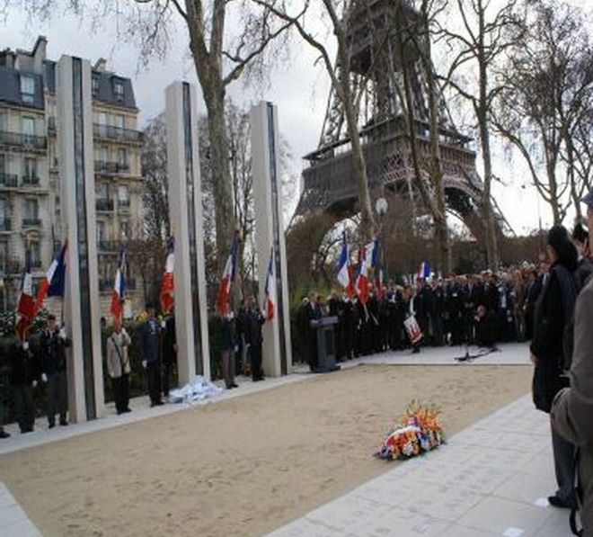 15 H : Recueillement et dépôt de gerbes devant les colonnes du Quai Branly. RER : ligne C (station Champs de Mars - Tour Eiffel) Métro : ligne 6 (station BIR-HAKEIM)