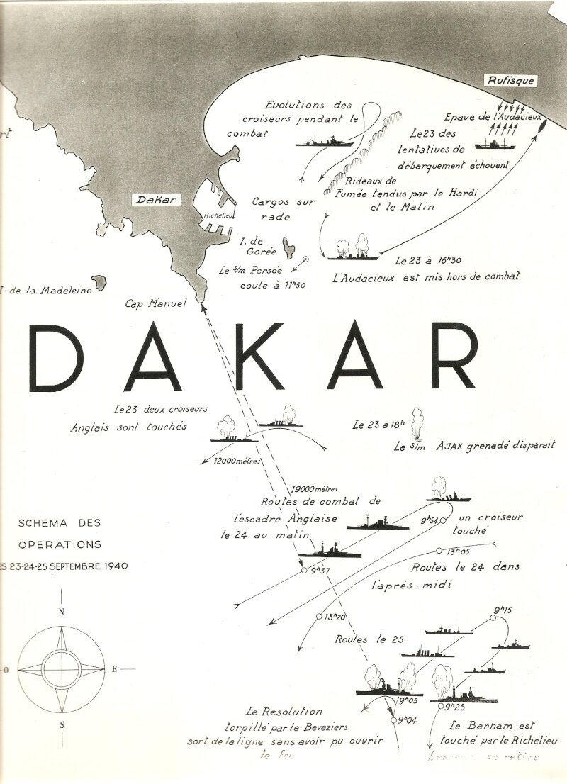 Cet épisode sur Dakar confirme la justesse de mes propos car si la France métropolitaine était vaincue, l’Empire ne considérait nullement l’être. Si la France métropolitaine avait capitulé, l’Empire s’y était refusé et la marine française (ce qu’il en restait), comme elle s’y était engagée, avait rejoint les ports africains composant l’Empire afin de poursuivre le combat.
