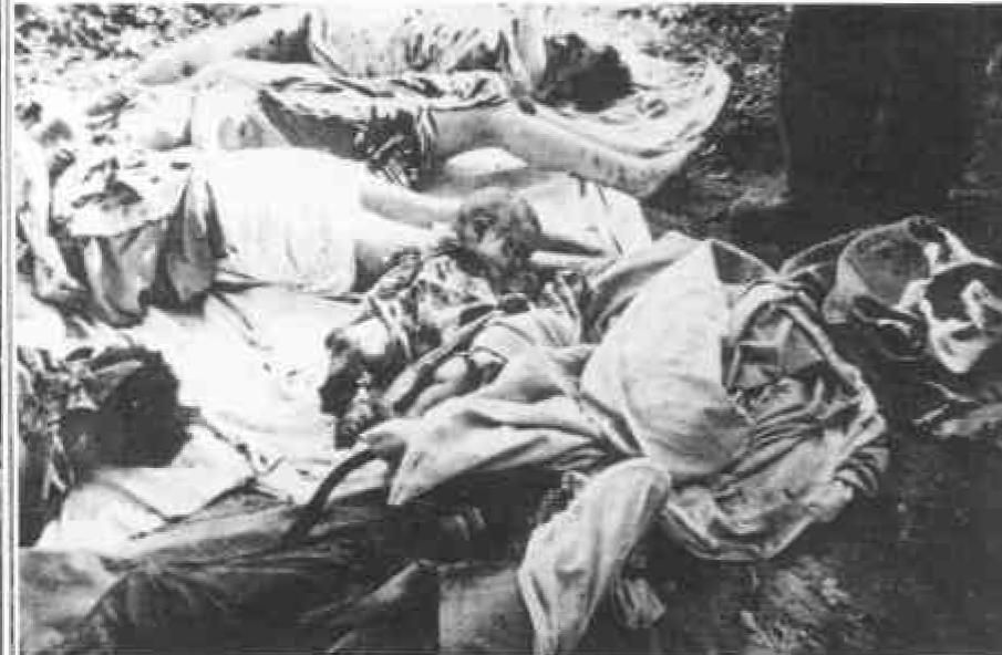 Un avion de tourisme est passé au-dessus du village et a donné t'alerte. L'armée est arrivée à dix-sept heures. Et là, nous sommes rentrés dans la maison pour constater l'horreur. Mon petit frère Roland respirait encore; il est resté cinq jours dans le coma et nous l'avons sauvé. Malheureusement ma sœur Olga a été violée et assassinée, ma sœur Suzanne, blessée à la tête, elle en porte encore la marque. Puis l'armée nous a regroupés. Ma famille Azeï, tous massacrés au couteau, la sœur de ma mère, son mari, ses deux filles dont l'une était paralysée, l'une des filles qui était en vacances avec son bébé a été, elle aussi, assassinée à coups de couteau (c'est la fiancée de son frère, qui s'était cachée, qui a tout vu et nous l'a raconté). Le bébé avait été éclaté contre le mur. Puis, mon cousin a été tué à coups de fourchette au restaurant de la mine, le frère de ma mère, Pierrot Scarfoto a été, lui aussi massacré, en voulant sauver ses enfants, à coups de couteau, les parties enfoncées dans la bouche, ainsi que mon neveu Roger, âgé de 17 ans. Mon père, sourd de naissance, blessé à coups de couteau, s'était réfugié dans une galerie abandonnée. Il n'a pas entendu l'armée, on ne la retrouvé que quinze jours plus tard, mort à la suite de ses blessures. Il a dû souffrir le martyre. Mon jeune frère julien a été également massacré.