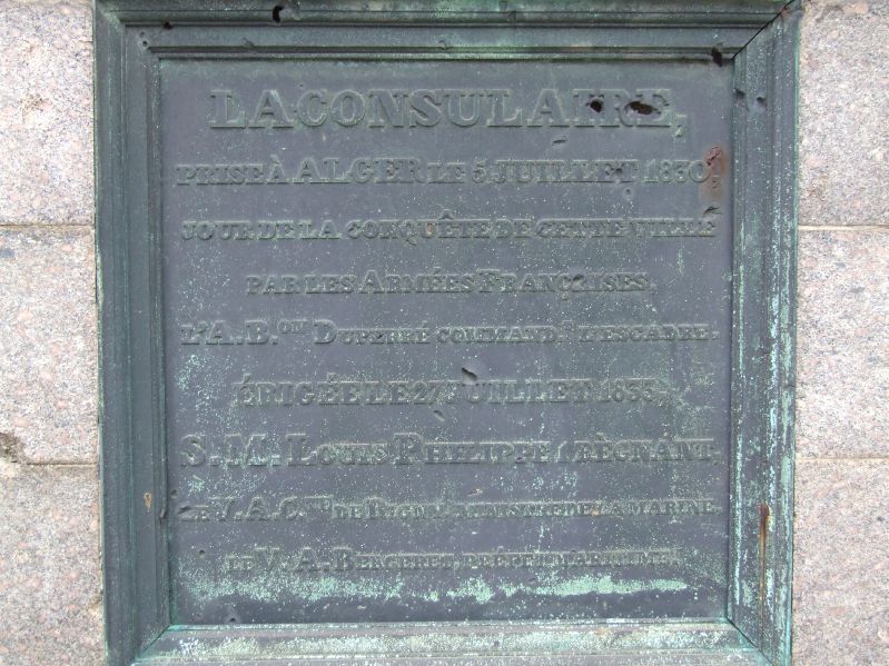 Le 5 juillet 1830, les troupes française prennent Alger et trouvent le canon relégué sous les voûtes de l'Amirauté ; transporté à Brest sur ordre de l'amiral Duperré, il est dressé sur un socle de granit flanqué de bas-reliefs et devient un monument commémoratif et un monument aux morts inauguré en juillet 1833 ultérieurement couronné d'un coq gaulois, monument commémoratif du patrimoine français, du patrimoine breton, du patrimoine de Brest, et doit le rester.