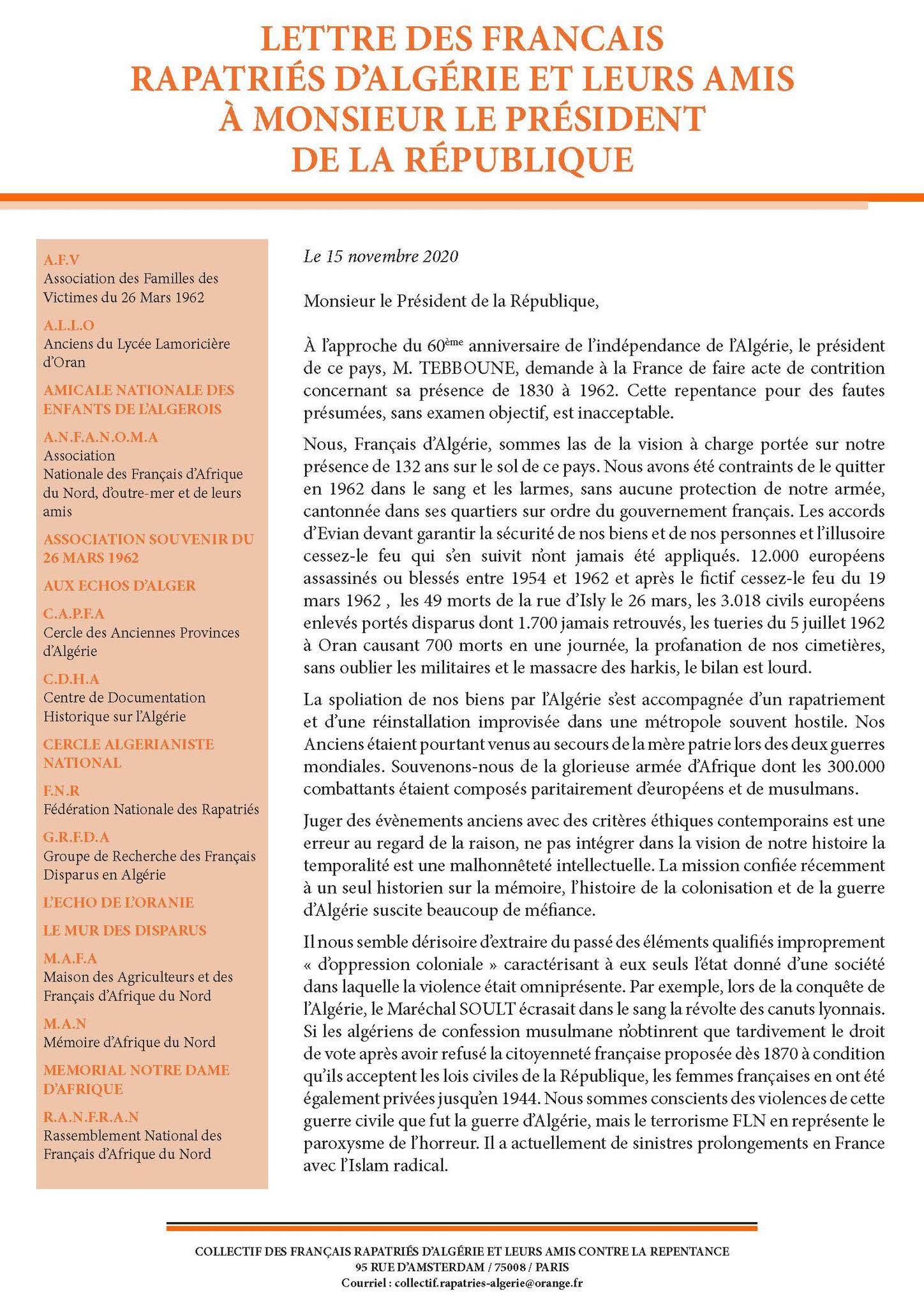 Malgré le refus du repentir du Président de la République française, force est de constater que le Rapport qu’il a commandité et apparemment accrédité, est du début à la fin un acte de repentance qui ne dit pas son nom. S’il devait être maintenu tel quel, il vouera à l’échec l’ambition d’en faire un instrument de la réconciliation entre l’Algérie et la France.